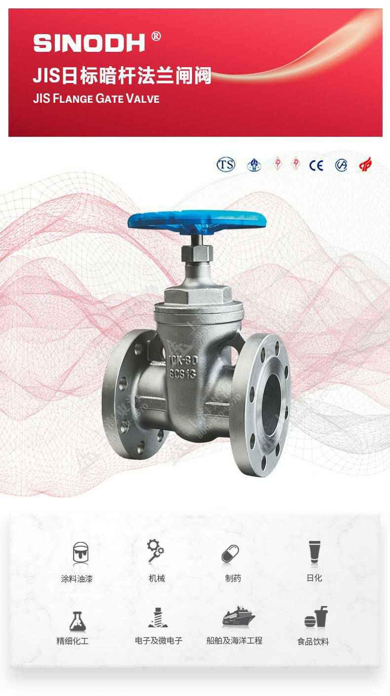 JIS日标暗杆法兰闸阀,为开云网页版·官方版在线登入 -开云(中国)自主研发生产。本产品设计制造标准符合JISB2071标准,该产品是一种最常见的启闭阀,利用闸板的上下工作来接通(全开)和截断(全关)管道中的流体介质。