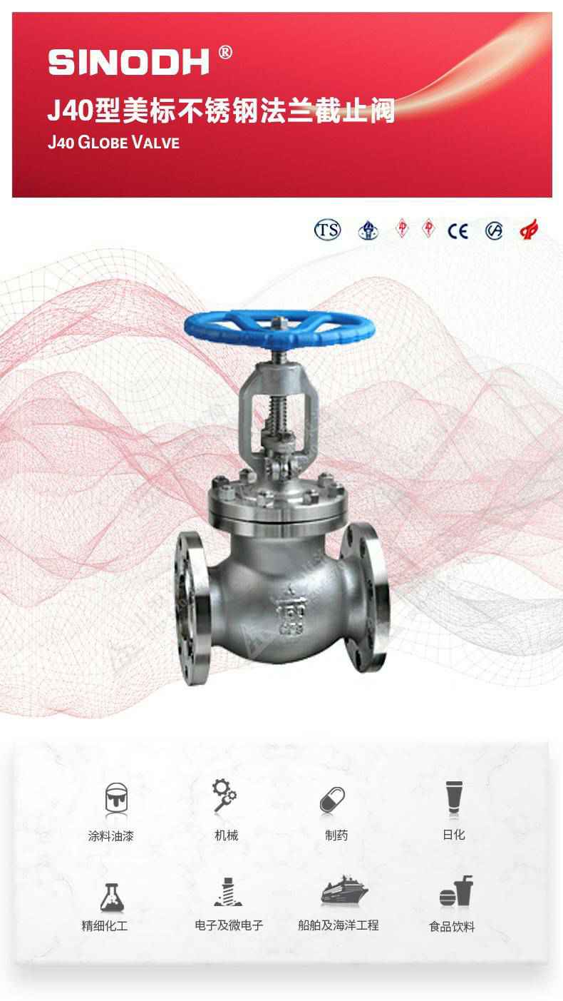 J40型美标不锈钢截止阀,为开云网页版·官方版在线登入 -开云(中国)自主研发生产。本产品的设计制造符合美国国家标准ANSIB16.34,美国石油学会标准AP1 6D和AP I 600要求,产品结构紧凑密、刚性好、封性性能优秀是一种最常见的启闭阀,利用闸板的上下工作来接通(全开)和截断(全关)管道中的流体介质。