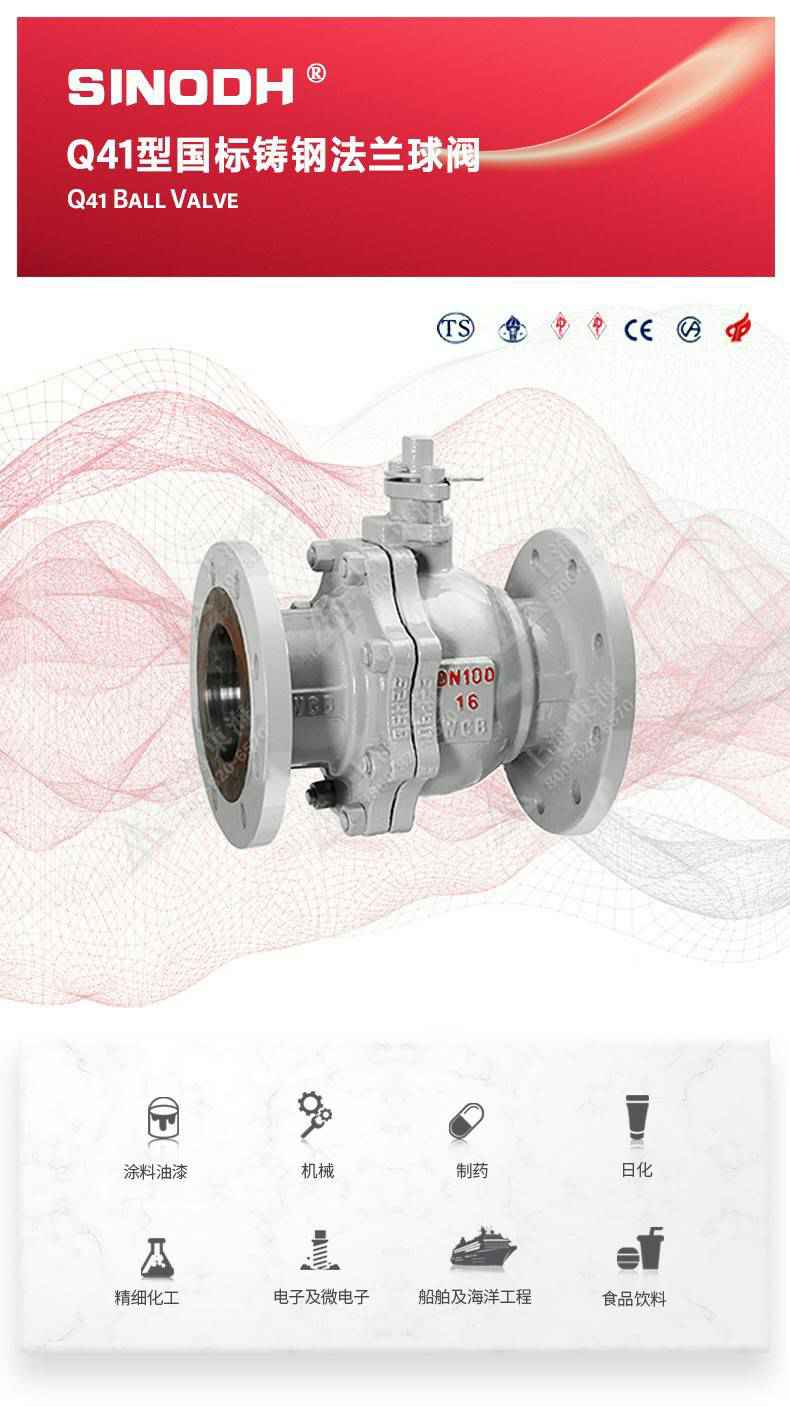 Q41型国标铸钢法兰球阀,为开云网页版·官方版在线登入 -开云(中国)自主研发生产。本产品设计制造标准符合GB/T12237、GB/T12224标准。该产品的球体在介质压力作用下球体能产生一定的位移并紧压在出口端的密封面上,保证出口端密封。适用于水、溶剂、酸和天然气等一般工业介质也适用于工况恶劣的介质,如氧气、过氧化氢、甲烷和乙烯等介质。